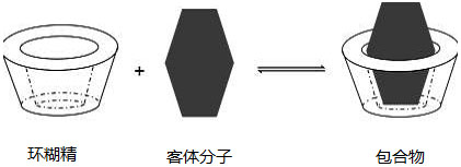 環(huán)糊精分子形狀為內(nèi)部疏水,外部親水的略成錐桶狀的空腔結(jié)構。環(huán)糊精的獨特結(jié)構使它們能夠與多種物質(zhì)形成主-客結(jié)構或形成包接復含物。環(huán)糊精復合物改變了客體分子的理化和生物特性(例如:增加溶解性、穩(wěn)定性和減少揮發(fā)、降低刺激性、毒性和副作用、掩蓋藥物的辛辣苦味,改善生物吸收利用度、均衡藥物緩慢釋放和延長藥物的半衰期、增強了客體(活性成份)的穩(wěn)定性和靶向釋放)。