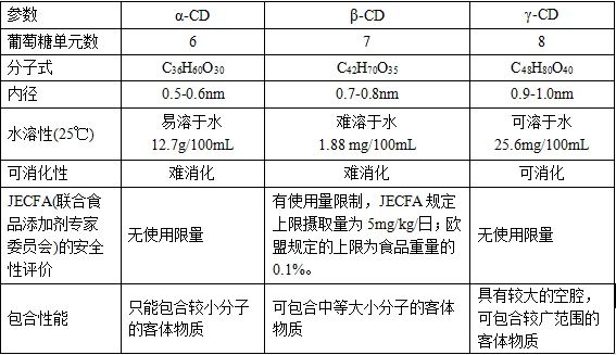 α、β、γ-環(huán)糊精的區(qū)別: